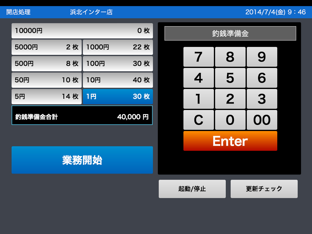 釣連準備金を金種別に入力をします。(自動釣銭機内の金額の取得可能)