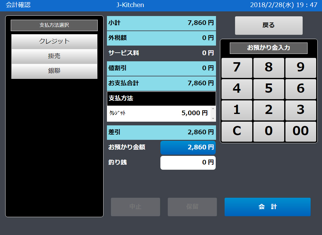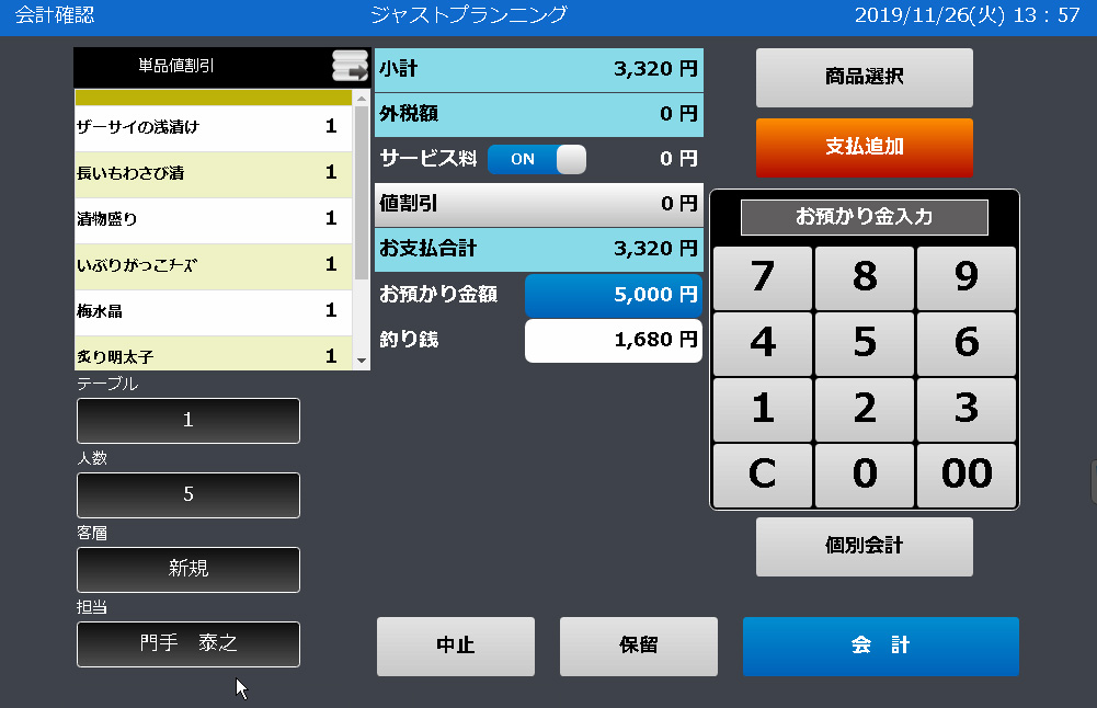POSだけをご利用の場合は、お客様に会計をお待たせさせないように途中までPOS入力し保留の状態にしておくことができる。