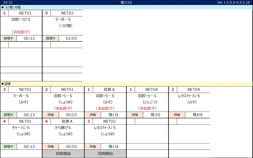 例えば、ラーメンは比較的早く仕上がる一方で、餃子やチャーハンは別の調理工程が必要です。そのため、注文通りに順番に作るだけでは、料理の完成タイミングが揃わず、提供品質にばらつきが出ることがありました。